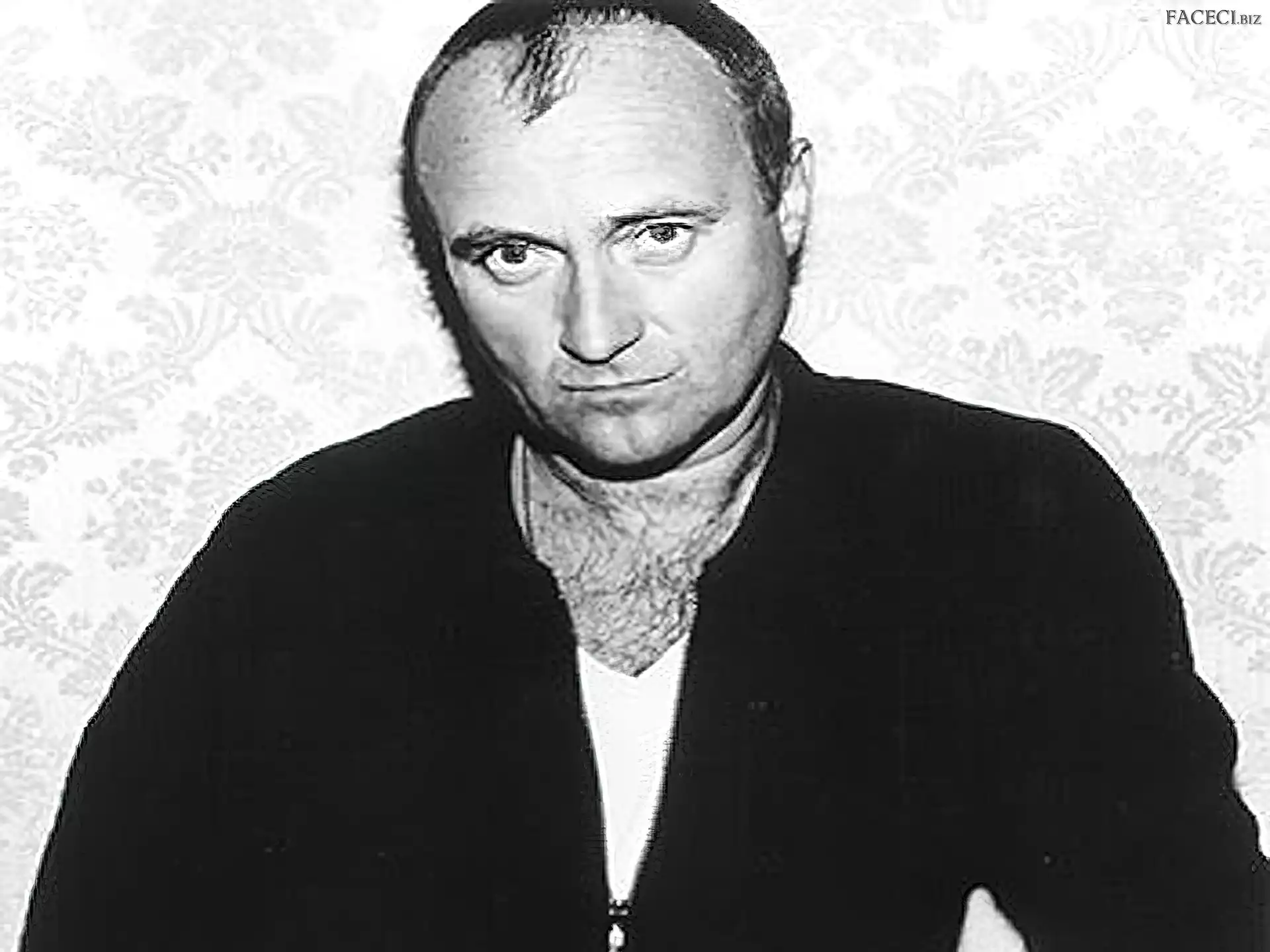 Twarz, Phil Collins Philip David Charles Collins Philip David Charles Collins Oczy, Phil Collins Mikrofon, Phil Collins Podkoszulek, Phil Collins, Biały Mikrofon, Phil Collins Gwiazda, Phil Collins